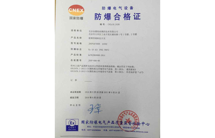 射頻導納開關防粉塵防爆合格證
